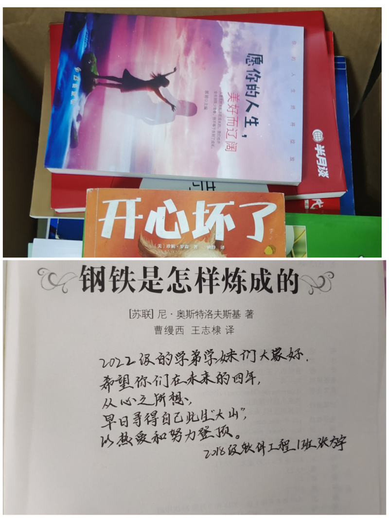 为营造健康、文明、和谐、有序的毕业氛围,学院组织开展了“奋斗正当时,一起向未来”主题活动。好书赠新生,邀请毕业生将自己喜欢的书籍或学习资料附上赠言送给2022级新生,以特殊的方式寄语即将到来的学弟学妹,珍惜大学时光,勤奋学习,学有所成。经验送校友,组织考研成功上岸的毕业生通过新媒体平台分享经验,将好的学习方法、考研经验传递给下一届毕业生,激励信工学子接续奋斗,营造优良校风学风。