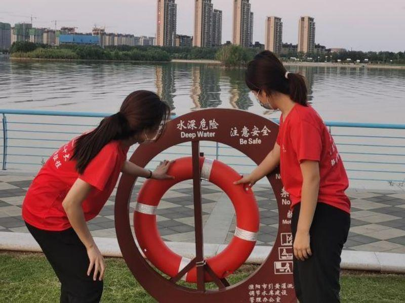 实践团成员们在洛阳市偃师区洛河水域、濮阳市龙湖、开封市尉氏县尉南公园周边水域及固始县祖师庙乡大冲村村委会等多个社区、公园的水域旁进行巡逻,仔细查看防溺水设施投入情况,协助当地村委会工作人员制作并安置防溺水警示牌,提醒大家注意安全,远离危险水域,为群众安全保驾护航。