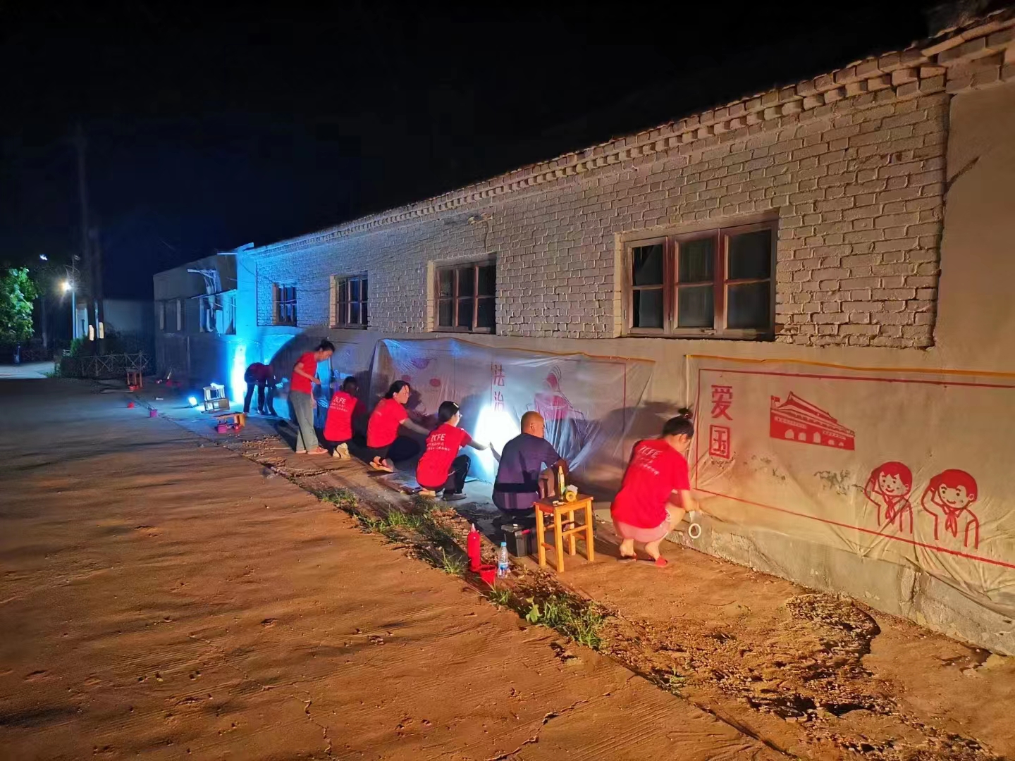 乡村筑梦家团队彩绘文化墙现场