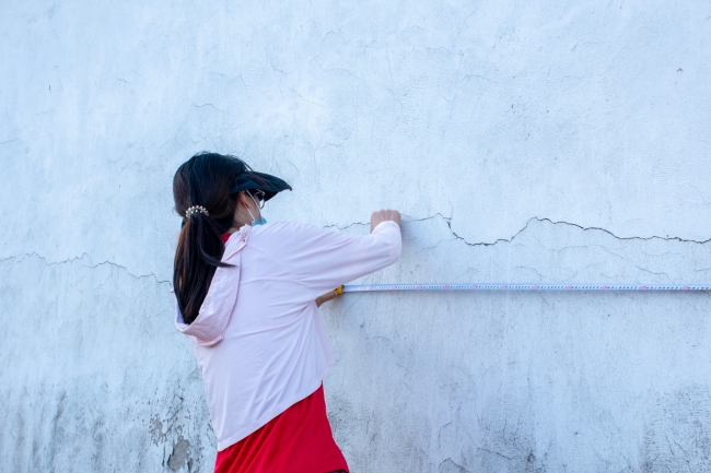 艺术设计学院毛雪老师做彩绘文化墙准备工作