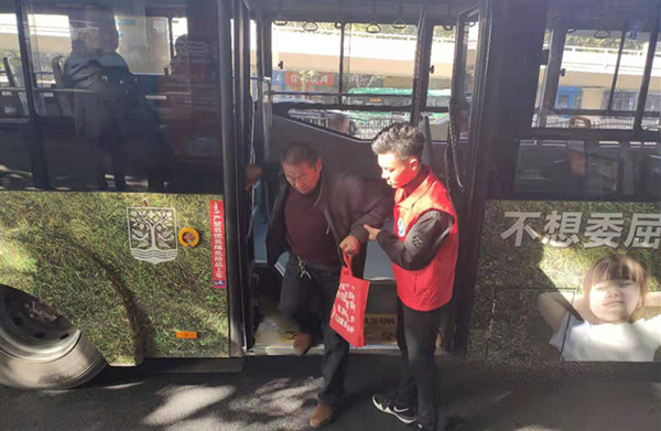在活动中,志愿者们手举“自觉排队、文明乘车”的牌子。随着车辆有序进站,志愿者们组织乘客有序排队上车,对自觉排队上车的乘客发放绿色出行便利袋,并帮助上下车不方便的乘客提行李,展现当代大学生文明风采。